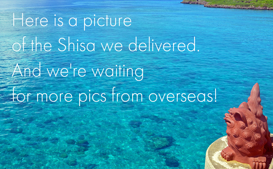 Hello! Welcome to Shimanchu Kobo! My name is Arakaki, the manager. I am learning English and do not speak it, but I am using the automatic translation feature to create this. And you can even use the Japanese Postal Service to ship them overseas! If you find a "Shisa" you like, please contact us by e-mail. We also have an English version of the shopping cart ready for you, and you can pay by credit card! Please use it. We will calculate the shipping cost separately and contact you later. Shisa is an Okinawan lion statue that is placed on entrances and roofs to ward off evil spirits. We will help you meet your guardian deity. We look forward to hearing from you.