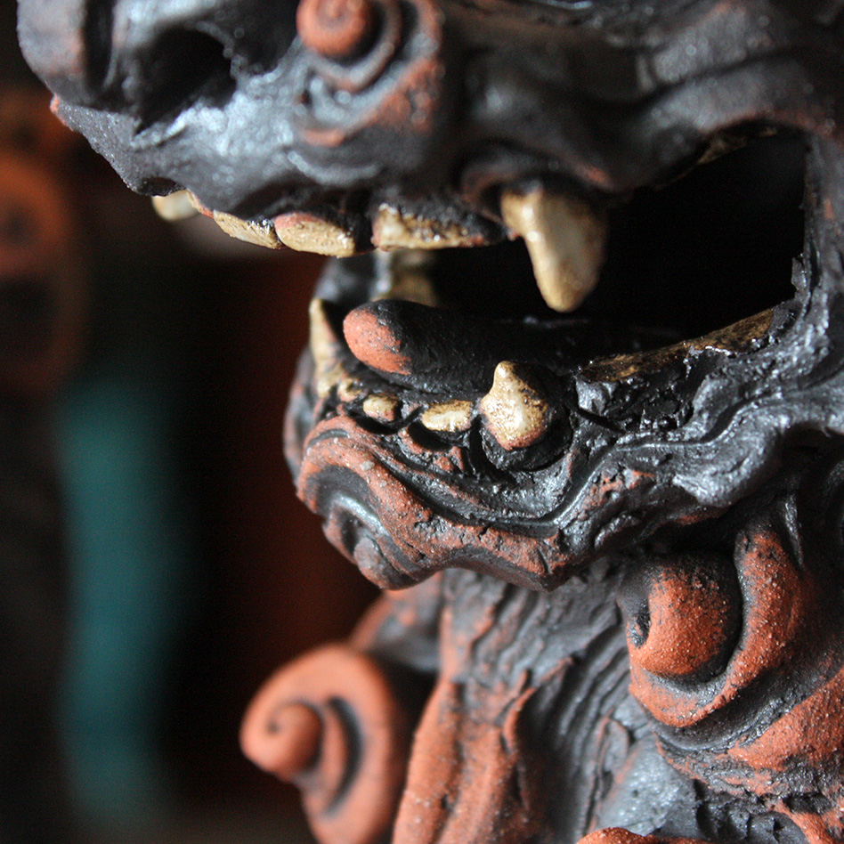 素晴らしいシーサーです。僕はこの作品から龍を感じます。龍神と呼びたくなるようなオーラがあります。 |