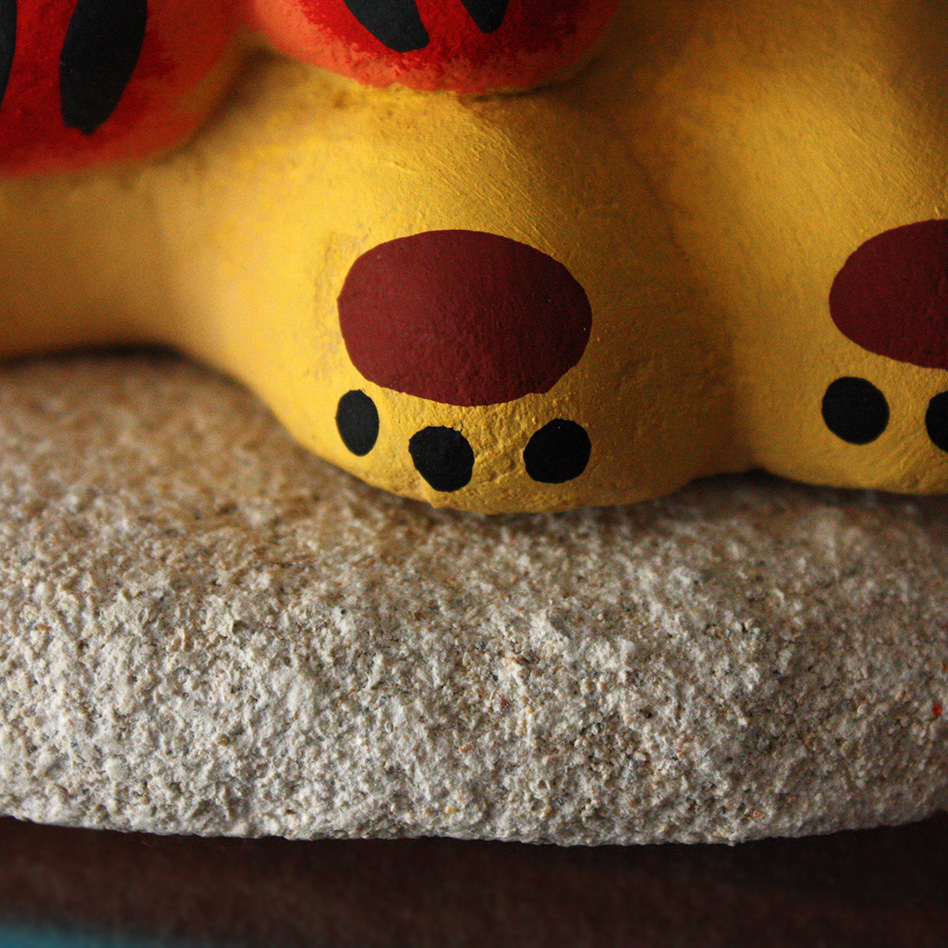 お土産品として漆喰シーサーはたくさん作られてきました。 焼き物と違い、漆喰にカラフルな色を着色できるのが特徴です。 着色した色は、数十年経過すると色が落ちてきますが、屋内で直射日光を避けると長く持つことができます。 ただ、ぜひ色が落ちていく様子も味わって下さい。 色の変化は、長年その漆喰シーサーが幸せを運んでくれた証でもあります。 ぜひ、色が落ちるまで飾って頂けましたら嬉しいです。 |