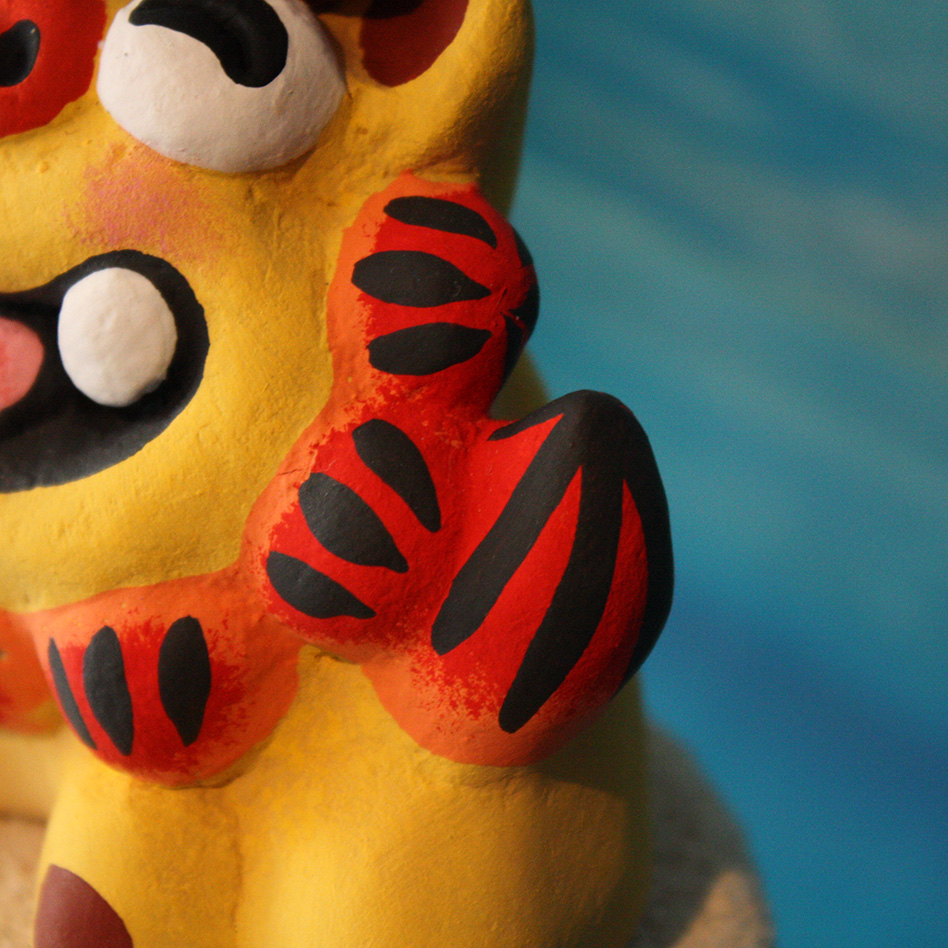 こちらの作品は、石垣島で制作されているのですよ〜♪僕は本島生まれ本島育ちですが、家族で一度訪れた石垣の海は、沖縄県民の僕でもビックリ! そんな綺麗な海を眺めながらのシーサー制作♪ 想像するだけで癒されてしまいますね(^^) |