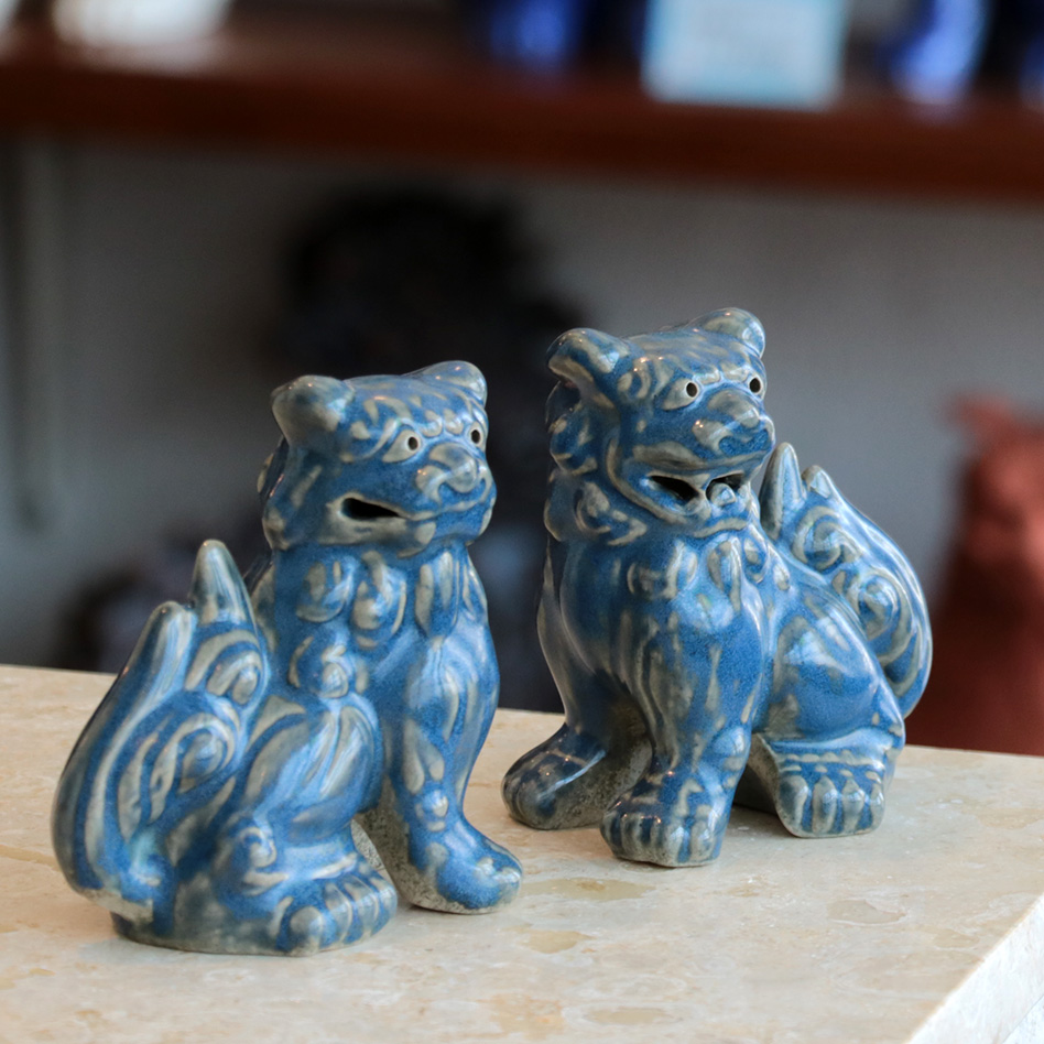 商品名:豪氣シーサー【青龍】 サイズ:高さ10cm × 横幅10cm × 奥行7cm 材質:陶器(鋳込み成形) 釉薬:青龍をイメージした特製ブルー(新垣信人 施釉) 素焼き:朝日陶器製 焼成:しまんちゅ工房 価格:4,730円(税込・送料無料) |