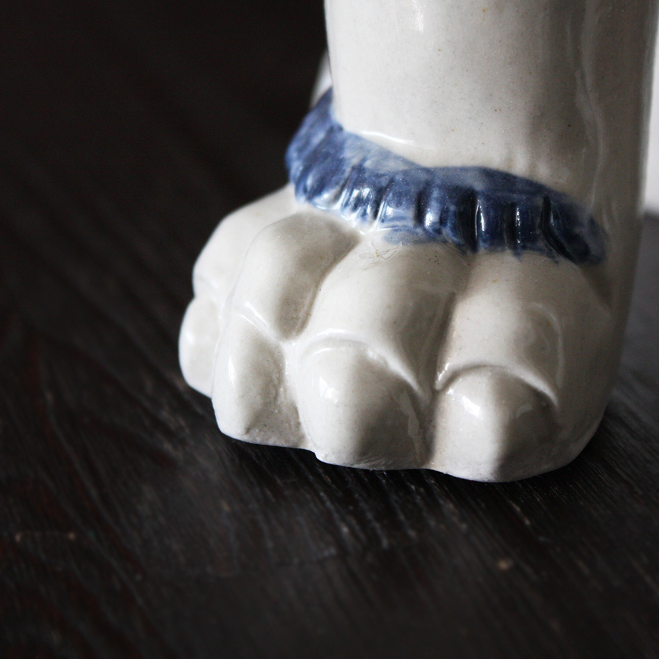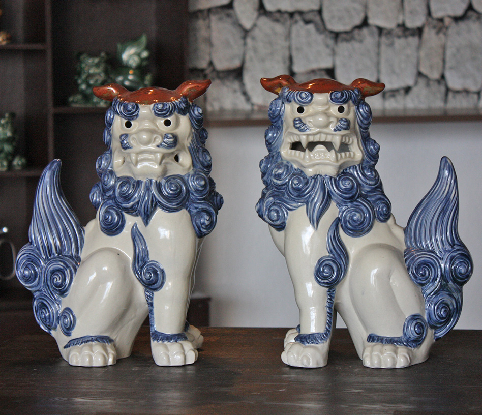 こちらの作品は長年、沖縄で愛されてきた伝統的な顔をもつ作品となっています。 釉薬も胴体の白に、毛並みの青、そして頭部の茶と三色施されていて色鮮やかな作品です。 ※皆様に御理解頂きたい事がございます。 作品は一つ一つ職人さんが手作りしていきます。 お届けする作品は、写真と違いがありますが、それは機械での大量生産型ではなく手作りの証として、また一期一会の出逢いのように感じて頂けましたら嬉しいです。 |