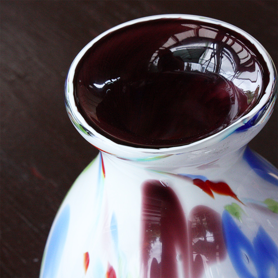 そんな花器の歴史に恥じない、作品を沖縄からご紹介出来る事を嬉しく思います。 琉球ガラスは、吹きガラスにこだわる本物の完全手作り工法です。その繊細さは、陶器の職人さんも唸るほど、刻々と冷めて固くなるガラスを瞬時に「かたち」づけていきます。 現在の琉球ガラスは、グラスが中心で花器のような大物の需要がへり、制作できる職人さんもとても貴重な存在になりました。 |
