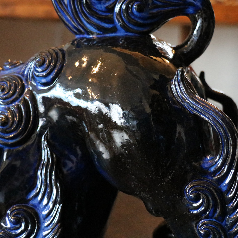 「深海シーサー」は、沖縄の豊かな海を象徴する色、深い青を基調にしています。この色は沖縄の海が持つ静けさと深遠な美しさを |