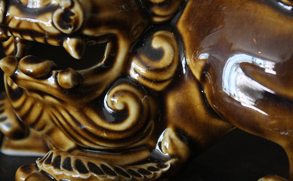 | 可愛らしいディティールですが、しっかりと大地に根差して足は頼もしいですね(^^)シーサーは、口があいたオスが福を招き 口を閉じたメスが福を逃がさない!という考え方もあるので、守り神と招福神の最高の獅子神です! |